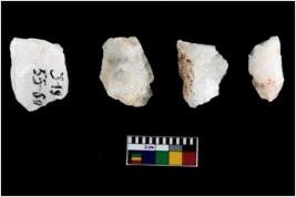 | Description / विवरण | Four utilised worked cores with sharp edges. Flakes removed from almost all the sides. Some are tapering at one end. |