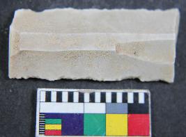 | Description / विवरण | Parallel sided chert blade with retouching are present and two dorsal ridge is present. |