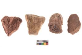 | Description / विवरण | Specimen of flake tools with prominent flaking marks. |