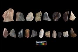 | Description / विवरण | There are n-20 of intact flake cores made up of chert. Some of them have bulge of percussion and some are flat flakes. |