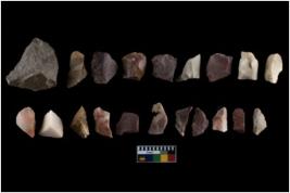| Description / विवरण | There are n-20 of intact flake cores made up of chert. Some of them have bulge of percussion and some are flat flakes. |
