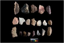 | Description / विवरण | There are n-20 of intact flake cores made up of chert. Some of them have bulge of percussion and some are flat flakes. |