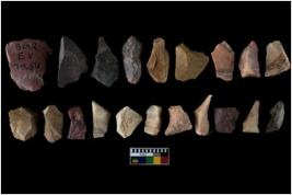 | Description / विवरण | There are n-20 of intact flake cores made up of chert. Some of them have bulge of percussion and some are flat flakes. |
