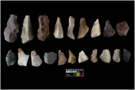 | Description / विवरण | There are n-20 of intact flake cores made up of chert. Some of them have bulge of percussion and some are flat flakes. |