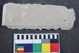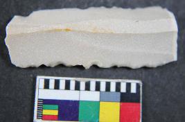 | Description / विवरण | A fragment of blade having sharp parallel sides with two dorsal ridge and trapezoidal in section. It has smooth surface. |