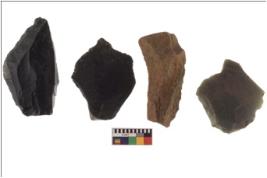 | Description / विवरण | Four flakes; most of them are tapering at one end with few having sharp edges. |