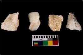 | Description / विवरण | Specimen of a cores with several broad fluted marks. Some of them are tapering at one end. |