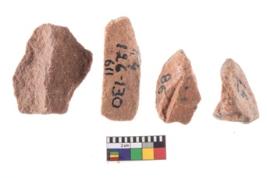 | Description / विवरण | A Sub rectangular flake with wavy thick distal end and broken functional top. It reined pebbly cortex on one side and irregular thin edge on the other |
