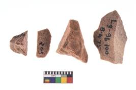 | Description / विवरण | A Sub rectangular flake with wavy thick distal end and broken functional top. It reined pebbly cortex on one side and irregular thin edge on the other |