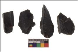 | Description / विवरण | Four flakes; most of them are tapering at one end with few having sharp edges. |