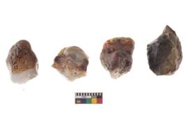 | Description / विवरण | Specimen of a fluted cores having several broad fluted marks indicating the detached blades from it. |