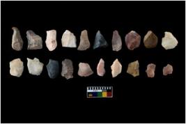| Description / विवरण | There are n-20 of intact flake cores made up of chert. Some of them have bulge of percussion and some are flat flakes. |