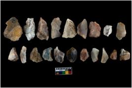 | Description / विवरण | There are n-20 of intact flake cores, out of them 2 are made up of quartz, 7 are of chalcedony, 10 are of chert and 1 is made up of agate. Some of them have bulge of percussion and some are flat flakes. |
