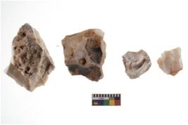 | Description / विवरण | Specimen of a fluted cores having several broad fluted marks indicating the detached blades from it. |