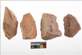 | Description / विवरण | Four flakes; most of them are tapering at one end with few having sharp edges. |