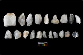 | Description / विवरण | There are n-20 of intact flake cores made up of Quartz. Some of them have bulge of percussion and some are flat flakes. |