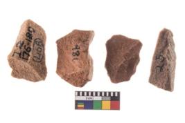 | Description / विवरण | A Sub rectangular flake with wavy thick distal end and broken functional top. It reined pebbly cortex on one side and irregular thin edge on the other |