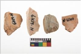 | Description / विवरण | Four flakes; most of them are tapering at one end with few having sharp edges. |