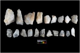 | Description / विवरण | There are n-20 of intact flake cores made up of Quartz. Some of them have bulge of percussion and some are flat flakes. |