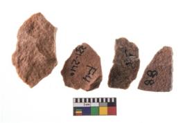 | Description / विवरण | A Sub rectangular flake with wavy thick distal end and broken functional top. It reined pebbly cortex on one side and irregular thin edge on the other |