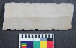 | Description / विवरण | A fragment of blade having sharp parallel sides with one dorsal ridge and triangular in section. It has smooth surface. |
