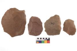 | Description / विवरण | There are n-4 of utilized flake cores. There are multidirectional irregular dominant scar pattern on both dorsal and ventral face of the cores. Some of them bulge of percussion and some are flat flake cores. |