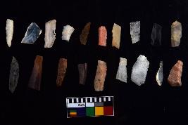 | Description / विवरण | There are n-20 of microliths, among them 8 are quartz, and 12 are of chert. Some of them are partially broken. They show variation in colour, size and shape. Some of them are blunted back blades, points, triangles, trapezes, crescent and truncated blades. |