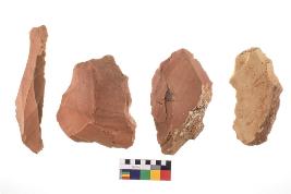 | Description / विवरण | There are n-4 of utilized flake cores. There are multidirectional irregular dominant scar pattern on both dorsal and ventral face of the cores. Some of them bulge of percussion and some are flat flake cores. |