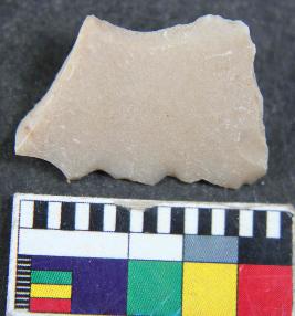 | Description / विवरण | Fragment of chert blade showing thick broad parallel sided, one dorsal is present, trigular in section and sharp cutting edges. Its surface is smooth. |