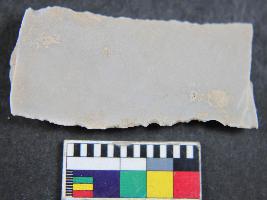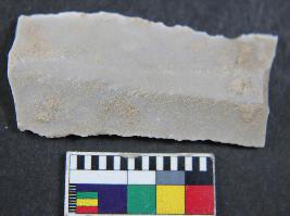 | Description / विवरण | Fragment of chert blade showing thick broad parallel sided, one dorsal is present, trapezi in section and sharp cutting edges. Its surface is smooth. |
