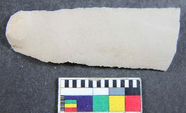 | Description / विवरण | Fragment of chert blade showing thick broad parallel sided, two dorsal is present, tringular in section and sharp cutting edges. Its surface is smooth. |