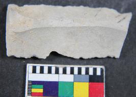| Description / विवरण | Fragment of chert blade showing thick broad parallel sided, one dorsal is present, tringular in section and sharp cutting edges. Its surface is smooth. |