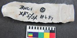 | Description / विवरण | Fragment of chert blade showing thick broad parallel sided, two dorsal is present, trapezi in section and sharp cutting edges. Its surface is smooth. |