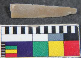 | Description / विवरण | Fragment of chert blade showing thick broad parallel sided, one dorsal is present, tringular in section and sharp cutting edges. Its surface is smooth. |