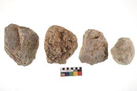 | Description / विवरण | There are n-4 of utilized flake cores. Out of them 3 are made up of Sandstone and 1 is made up of Quartz. There are multidirectional irregular dominant scar pattern on both dorsal and ventral face of the cores. Some of them bulge of percussion and some are flat flake cores. |