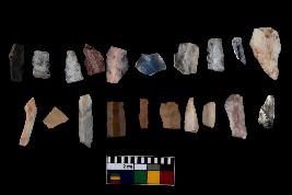 | Description / विवरण | There are n-20 of microliths, among them 8 are quartz, and 12 are of chert. Some of them are partially broken. They show variation in colour, size and shape. Some of them are blunted back blades, points, triangles, trapezes, crescent and truncated blades. |