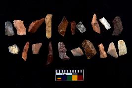 | Description / विवरण | There are n-20 of microliths, among them 8 are quartz, and 12 are of chert. Some of them are partially broken. They show variation in colour, size and shape. Some of them are blunted back blades, points, triangles, trapezes, crescent and truncated blades. |