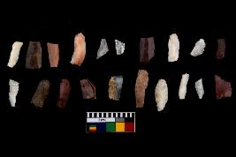 | Description / विवरण | There are n-20 of microliths, among them 9 are quartz, and 11 are of chert. Some of them are partially broken. They show variation in colour, size and shape. Some of them are blunted back blades, points, triangles, trapezes, crescent and truncated blades. |