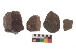 | Description / विवरण | There are n-4 of utilized flake cores. There are multidirectional irregular dominant scar pattern on both dorsal and ventral face of the cores. Some of them bulge of percussion and some are flat flake cores. |