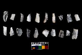 | Description / विवरण | There are n-20 of microliths, all of them are quartz. Some of them are partially broken. They show variation in colour, size and shape. Some of them are blunted back blades, points, triangles, trapezes, crescent and truncated blades. |
