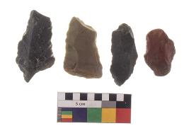 | Description / विवरण | There are n-4 of utilized flake cores. There are multidirectional irregular dominant scar pattern on both dorsal and ventral face of the cores. Some of them bulge of percussion and some are flat flake cores. |