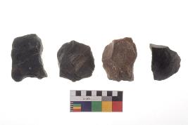 | Description / विवरण | There are n-4 of utilized flake cores. There are multidirectional irregular dominant scar pattern on both dorsal and ventral face of the cores. Some of them bulge of percussion and some are flat flake cores. |