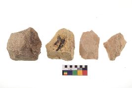| Description / विवरण | There are n-4 of utilized flake cores. There are multidirectional irregular dominant scar pattern on both dorsal and ventral face of the cores. Some of them bulge of percussion and some are flat flake cores. |