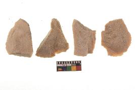 | Description / विवरण | There are n-4 of utilized flake cores. There are multidirectional irregular dominant scar pattern on both dorsal and ventral face of the cores. Some of them bulge of percussion and some are flat flake cores. |