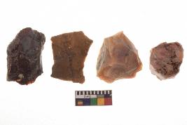 | Description / विवरण | There are n-4 of utilized flake cores. There are multidirectional irregular dominant scar pattern on both dorsal and ventral face of the cores. Some of them bulge of percussion and some are flat flake cores. |