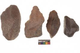 | Description / विवरण | There are n-4 of utilized flake cores; 03 of quartzite and 01 od chert. There are multidirectional irregular dominant scar pattern on both dorsal and ventral face of the cores. Some of them bulge of percussion and some are flat flake cores. |