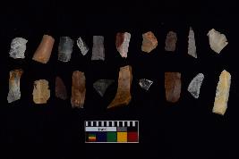 | Description / विवरण | There are n-20 of microliths, among them 5 are quartz, and 15 are of chert. Some of them are partially broken. They show variation in colour, size and shape. Some of them are blunted back blades, points, triangles, trapezes, crescent and truncated blades. |