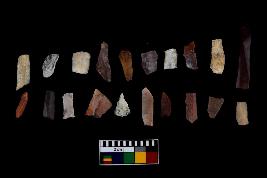 | Description / विवरण | There are n-20 of microliths, among them 5 are quartz, and 15 are of chert. Some of them are partially broken. They show variation in colour, size and shape. Some of them are blunted back blades, points, triangles, trapezes, crescent and truncated blades. |