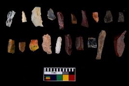 | Description / विवरण | There are n-20 of microliths, among them 3 are quartz, and 15 are of chert. Some of them are partially broken. They show variation in colour, size and shape. Some of them are blunted back blades, points, triangles, trapezes, crescent and truncated blades. |