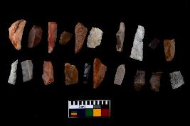 | Description / विवरण | There are n-20 of microliths, among them 4 are quartz, and 16 are of chert. Some of them are partially broken. They show variation in colour, size and shape. Some of them are blunted back blades, points, triangles, trapezes, crescent and truncated blades. |